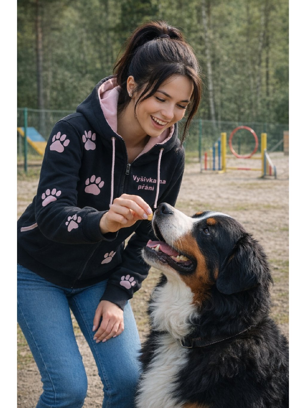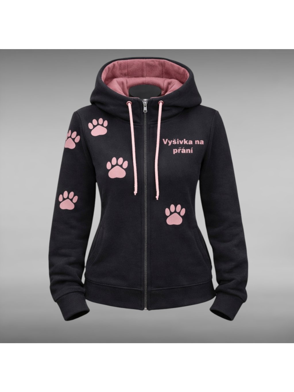 Dámská černá mikina, starorůžové tlapky + výšivka na přání...