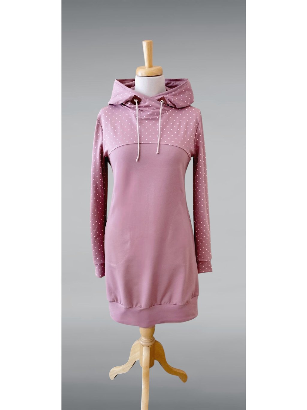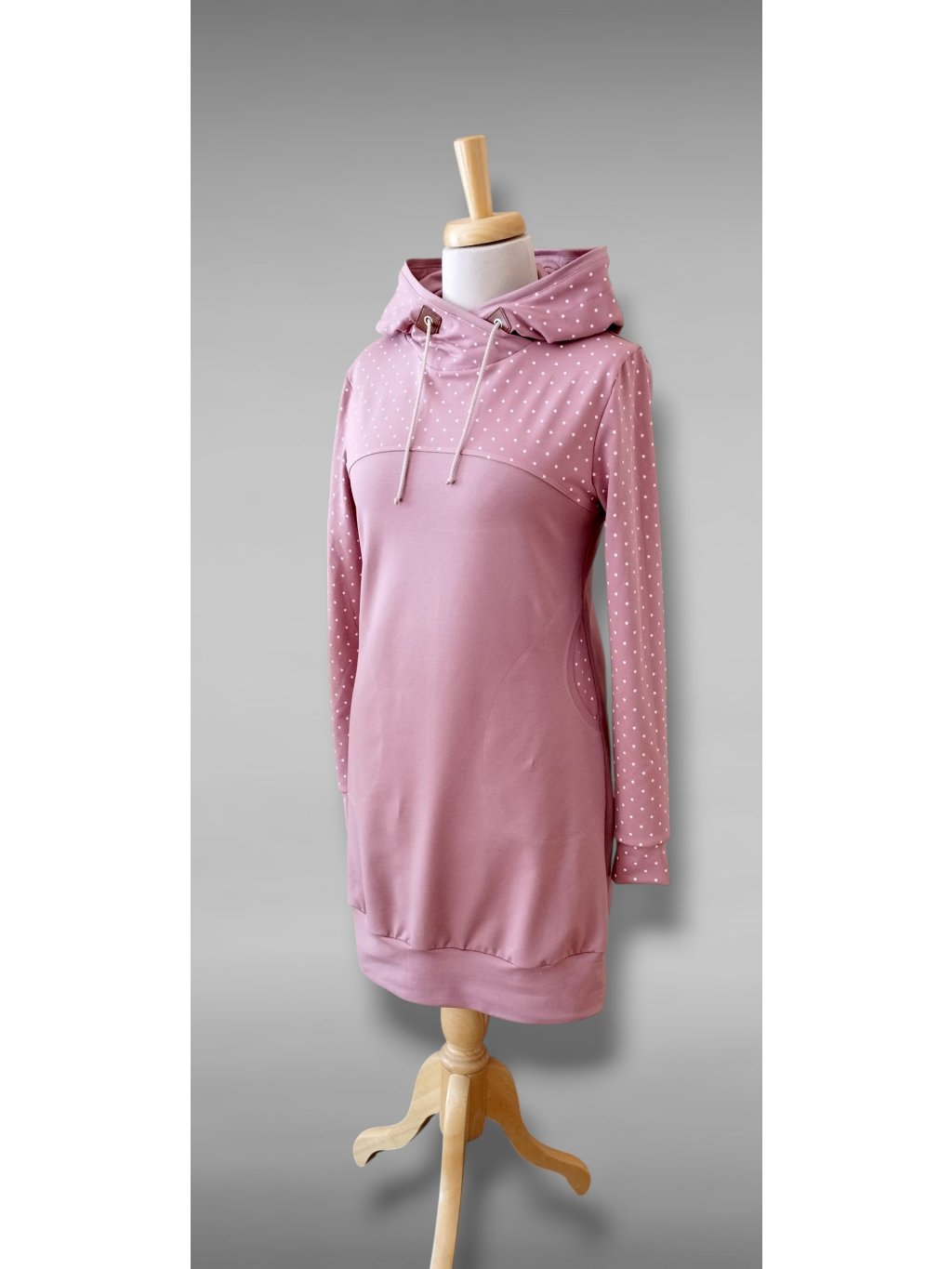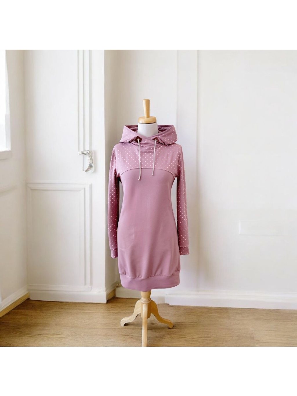 Šaty mají kapuci a v bocích vypracované kapsy. .